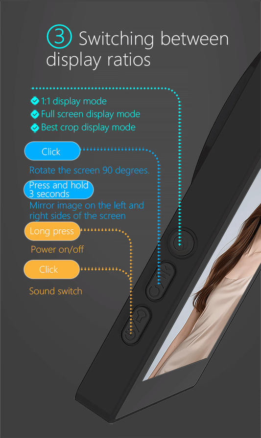 Wireless screen mirroring displays the camera feed on the monitor in real time. This way, you see exactly what you're recording, without any noticeable delay and with perfect framing. Ideal for vlogs, livestreams, and selfies where control is essential.