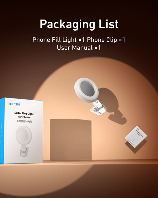 The light features a convenient clamp that allows you to securely attach it to your smartphone. The clamp has a cutout, so your phone's camera remains unobstructed and is not blocked. This design ensures you can quickly attach and remove the light without hindering your camera.