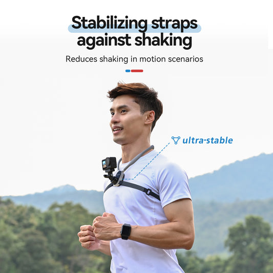 This neck mount has an extra-large size of 25 cm, making it fit comfortably around the neck. This larger design is also suitable for wearing over a thick jacket, making it ideal for year-round use. It ensures a stable fit and keeps the camera in place during movement.
