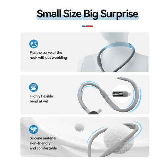 The neck mount is flexible and can be bent into any desired shape. This allows for precise adjustment of the camera angle for the ideal shot. The combination of silicone and plastic ensures that the mount is easy to bend and retains its shape during use.