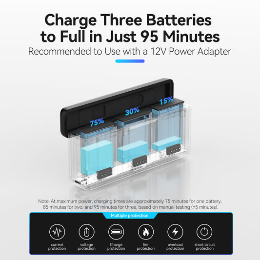 The charging box is equipped with multiple safety mechanisms. These protect your batteries from overheating, overcharging, overvoltage, and short circuits. So you can charge your batteries with peace of mind, knowing they are safe.