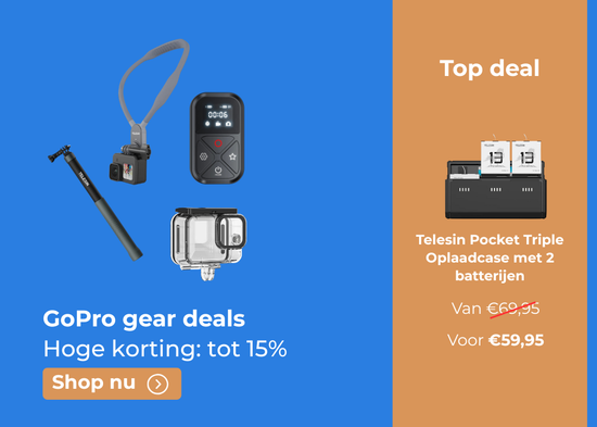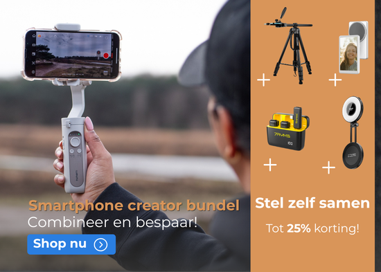 Je ontvangt standaard 15% korting op een groot gedeelte van ons assortiment. Daarnaast ontvang je 10% extra korting wanneer je 2 of meer producten besteld. Deze korting wordt automatisch toegepast in de winkelmand.Om je te helpen om jouw set-up compleet te maken, hebben we 4 verschillende bundels samengesteld. We hebben een oplaad bundel, camera-accessoires bundel, smartphone-creator bundel en een GoPro-accessoires bundel.